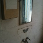 The guards point to their dedicated restroom as a symbol of how they are treated. As of August 23, the first floor, unisex restroom, which faces the communal courtyard and is managed by PHA, lacks a curtain, toilet seat, sink, soap and paper towels, and is in a filthy and unusable condition. “The male guards have to relieve ourselves behind a dumpster. The female guards have to ask one of the residents to use theirs. That’s how we are treated,” says Mannings.